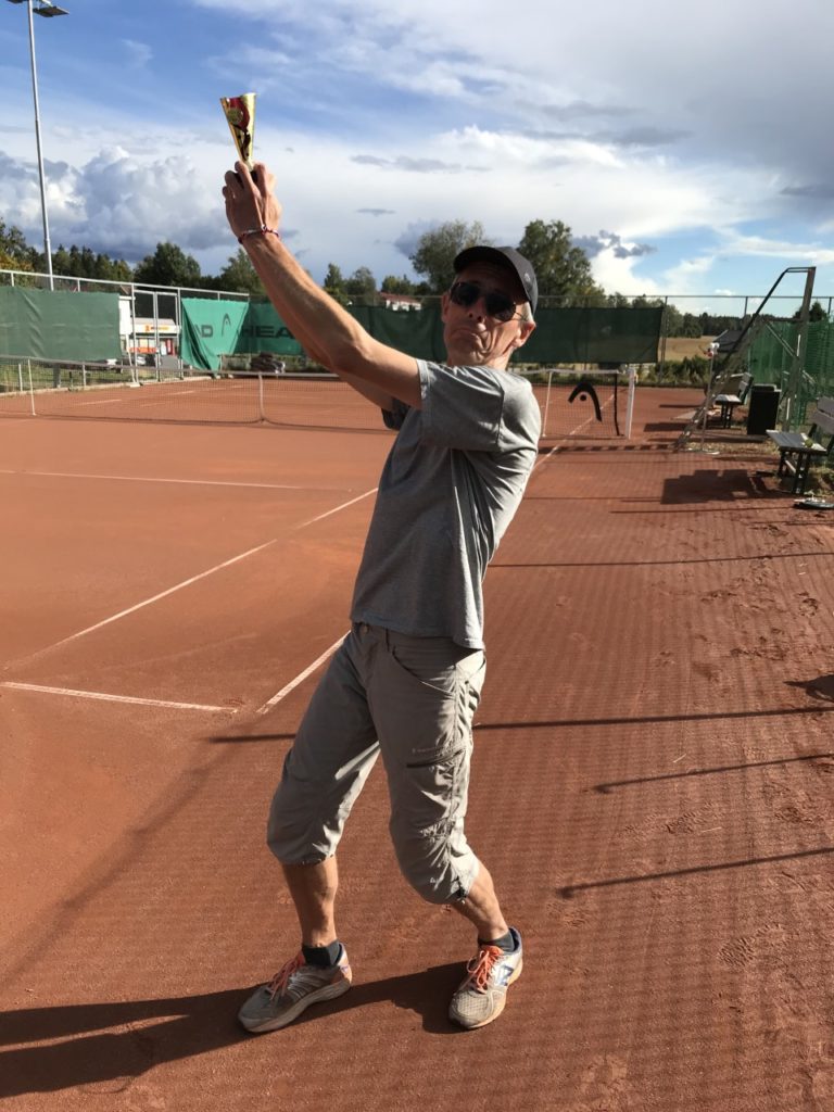 Daniel Rasse ble tidenes første poengmester i Ås tennisklubb. - Jeg måtte bli over femti for å min første pokal i idrett, sa den ferske mesteren etter seremonien.